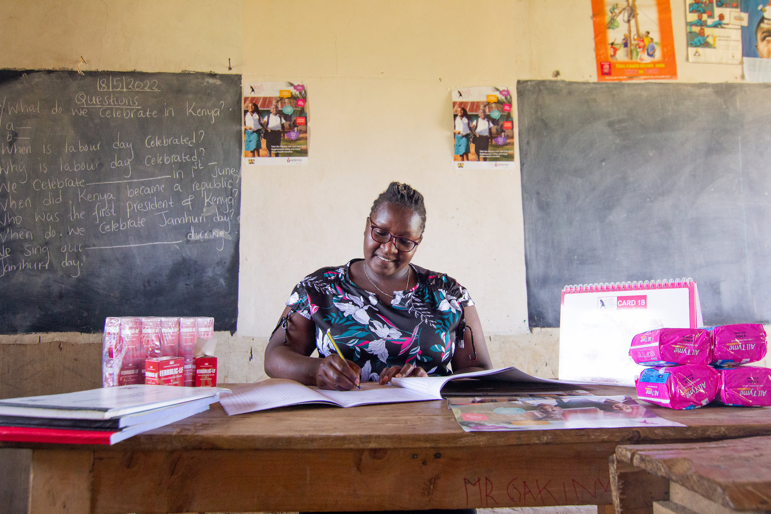 « Avant le programme, nous n’utilisions [que] les livres du programme scolaire », indique Wanjiru. « Aujourd’hui, nous avons beaucoup de jeunes enseignantes qui organisent des sessions pour guider les filles sur la manière de vivre avec les menstruations et sur les aliments qu’elles doivent manger. Nous leur enseignons qu’elles doivent accepter les changements physiques qui se produisent en elles. Si une étudiante a besoin de rentrer chez elle pour régler un problème ou un symptôme lié à ses menstruations, l’école lui donne la possibilité de le faire. »