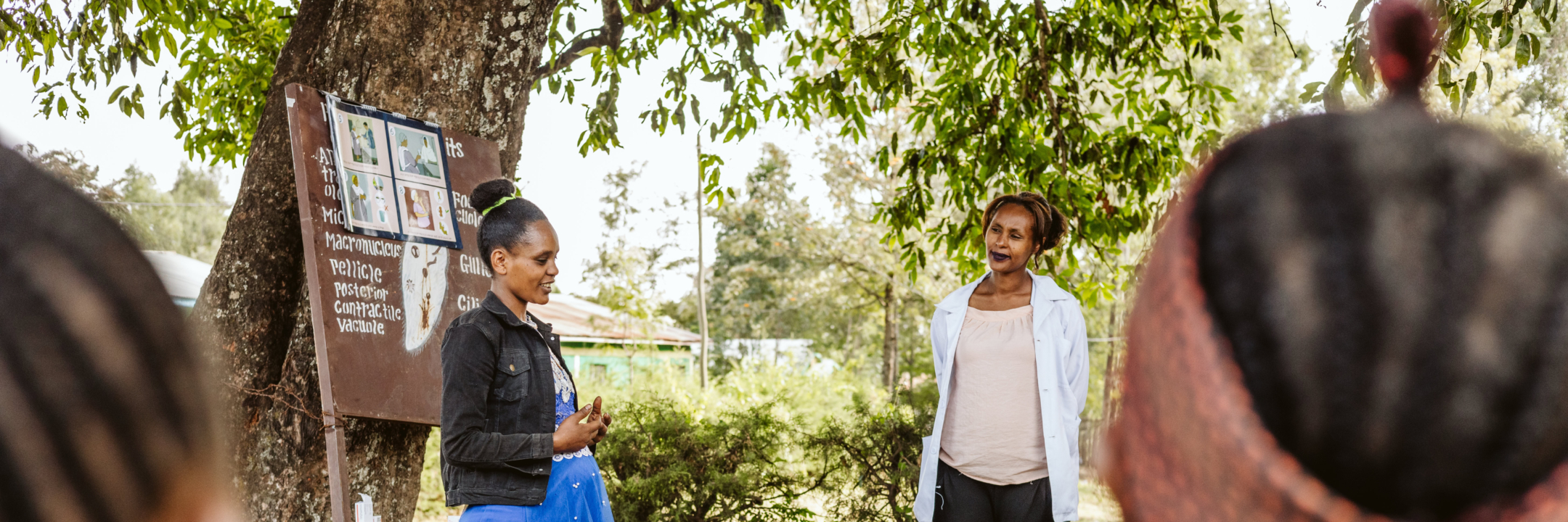 Every month, the village health post in Aze Debo hosts a pregnant women’s conference, where about 20 expectant mothers are welcomed as VIPs. They settle in the shade under trees awaiting the midwife who will facilitate the session and share crucial information for women and their babies.