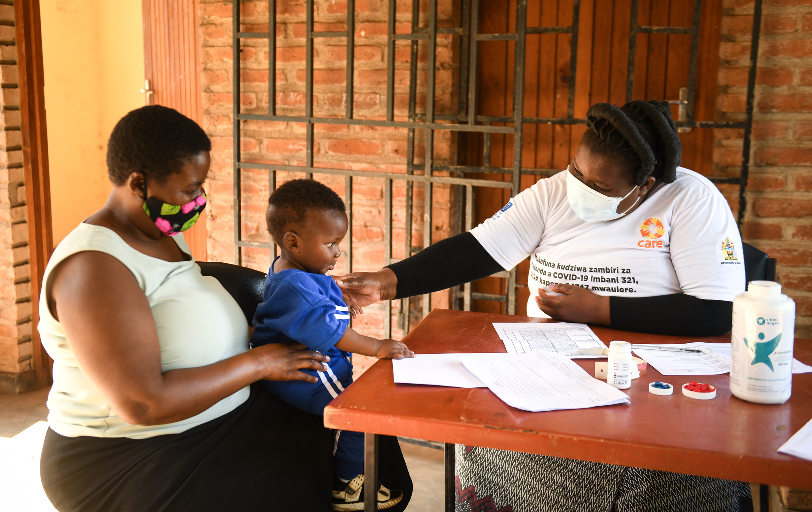 A mother waits for her baby to receive vitamin A at Luwanje Health Post in Mulanje, Malawi on 23 June 2021
