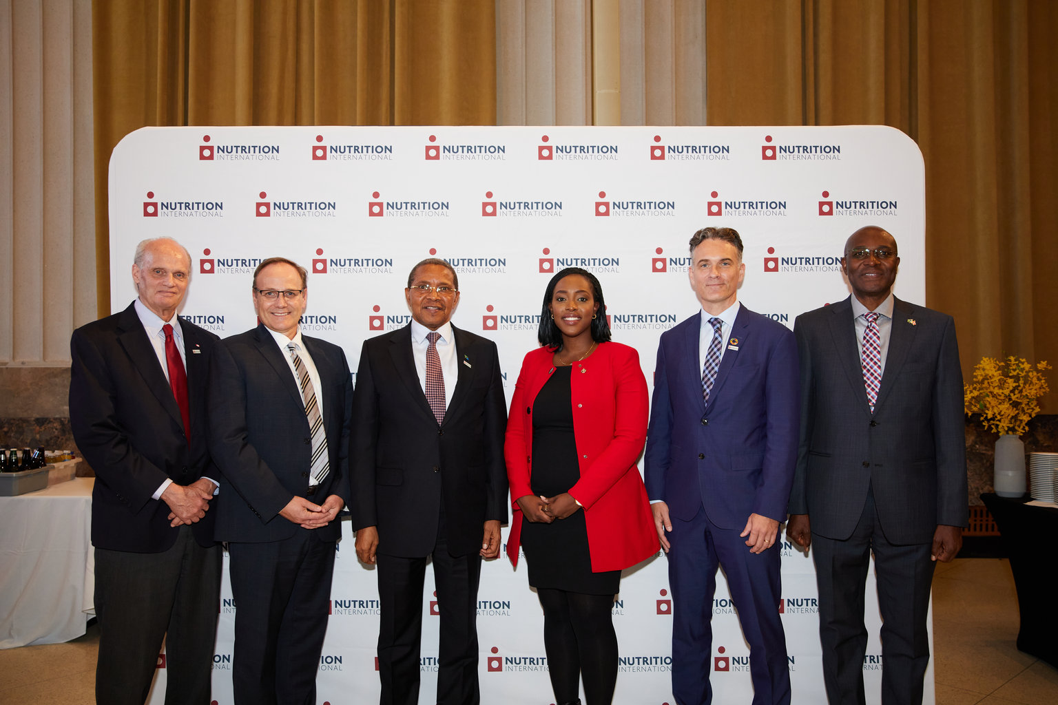From left to right: David de Ferranti, Nutrition International Board Chair; Chris MacLennan, Assistant Deputy Minister, Global Affairs Canada; His Excellency Dr. Jakaya Kikwete, former president of Tanzania; Member of Parliament Arielle Kayabaga; Joel Spicer, President and CEO of Nutrition International; Dr. Mpoki Ulisubisya, High Commissioner of Tanzania to Canada.